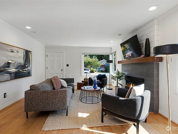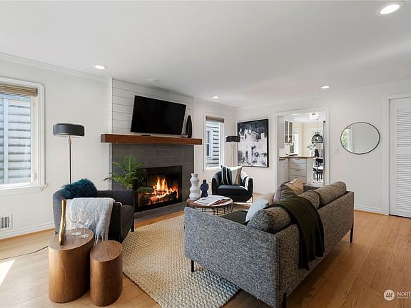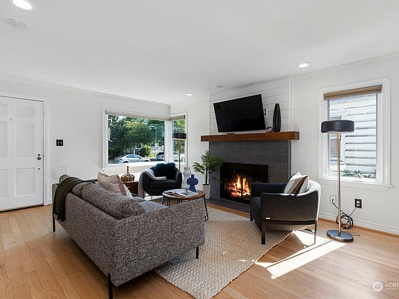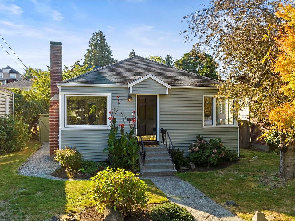 Your dream home nestled in a peaceful residential street. Step inside to hardwood floors, cozy wood-burning fireplace, and an updated kitchen complete w/ inviting eating space. Spacious bedrooms, one boasts delightful window seating & built-ins. Charming patio deck overlooking a meticulously maintained yard. Setting the perfect ambiance for gatherings and relaxation. Versatile lower level with large media room/office, additional bedroom, bath, extra space for workshop, and a separate entry, potentially making it an ideal ADU. Carport with plug-in charging and driveway space for a second car ensures you're always ready for your next adventure. Short walk to eateries, coffee shops, Golden Gardens, Burke Gilman, Sunset Hill Overlook and more!