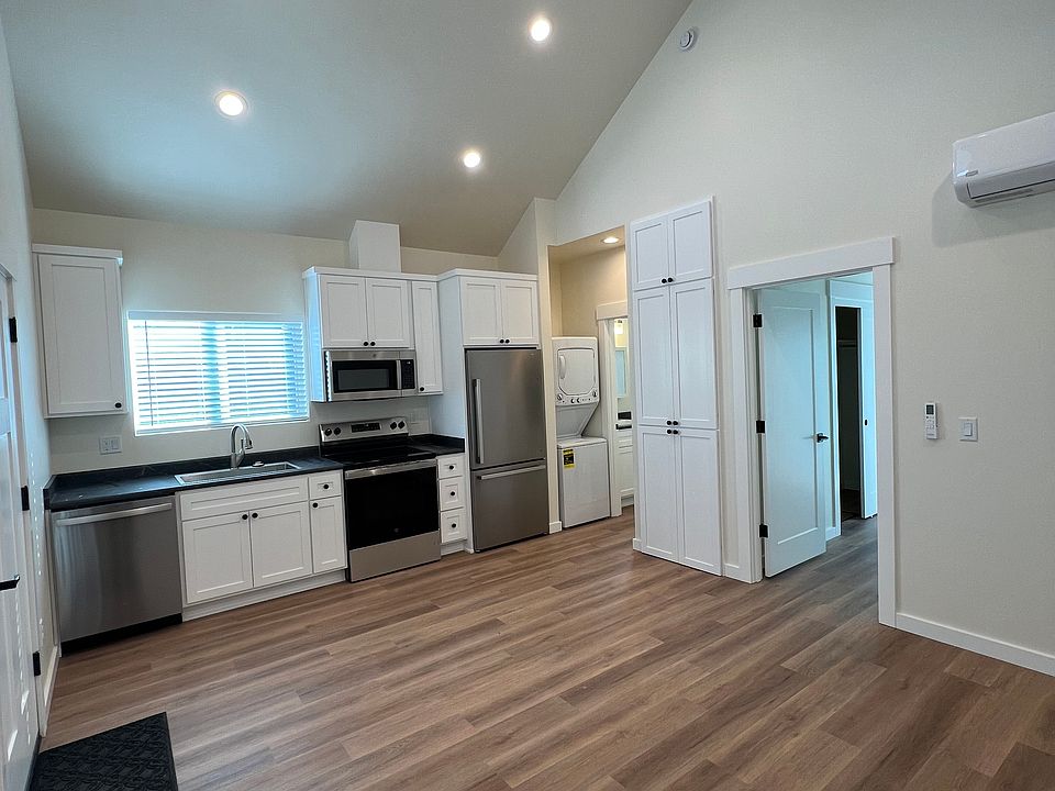 450 SqFt 1 Bedroom, 1 Bath, LVP Flooring Throughout, New Full size Stainless Steel Appliances, New Stacked Washer and Dryer in unit! Beautiful covered front porch and back porch, Mini Split AC/Heat in Living space and Bedroom. Concrete Driveway with 1 dedicated parking space, Private Fenced yard. Quiet Neighborhood walking distance to White City Middle School. Eagle Point School District.