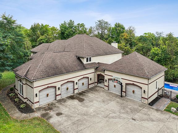 Discover this custom home offering privacy + luxurious living. At the heart of the home is a true gourmet kitchen designed for both function & entertaining, a centrally located first-floor office, a 2nd floor office (also makes a great den, hobby room or retreat), custom doors, soaring entryways, hardwood floors + a spacious loft. The walk-out lower level includes a private guest suite, gym, home theater & kitchenette. All bedrooms have their own bathroom including the guest bedroom in the lower level. 2nd floor laundry room. The first-floor owner's suite occupies its own private wing, complete w/a fireplace, hidden door to a generous walk-in closet, laundry, and a spa-like en suite bathroom. A dedicated elevator closet allows for a future elevator serving all three levels. Outside is an inground heated pool w/a captivating waterfall, covered patio, deck, balcony, garages for up to five vehicles, whole house generator. Built w/efficiency in mind, this home features radiant heated floors (also in one garage) & multi-zone heating & cooling for year-round comfort. Truly a must-see property, perfect for entertaining, relaxing & multi-generational living. Check out more details in the photos.