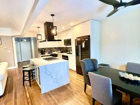 Rare find- Beautiful Move in Ready home! Recently renovated. This home is conveniently located in close proximity to parks, schools, malls, transportation and restaurants. Bright modern and spacious. 2 bedrooms; 2 full bathrooms; open living and dinning room; brand new state of the art eat-in-kitchen with black stainless steel appliances; granite countertops; illuminated cabinets; hardwood floors; newly installed beautiful & modern casement windows with high performance glass and life warranty by Andersen; large finished basement with full length of the house with separate entrance; cozy and elegant fenced in spacious patio with brand new gorgeous deck; Attached one car garage and driveway for parking of one additional car. Lovely renovated front porch with retractable awning; Located in a safe, quiet and charming community. Also conveniently in a neighborhood with no alternate side parking rules. This a home you will love!