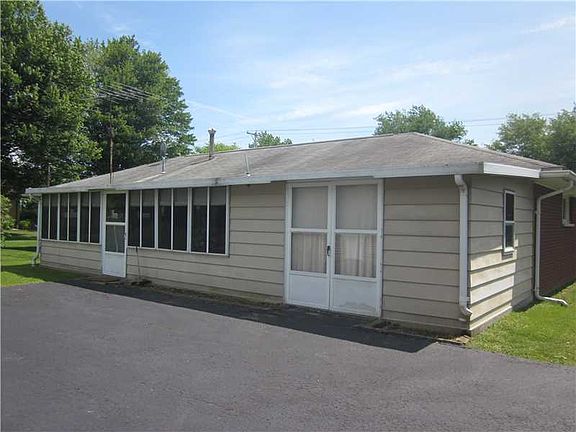 THREE BEDROOM STONE & BRICK RANCH features a lovely kitchen/dinette area, large living room, full bath, laundry/utility room, storage room, inviting three seasons porch, attached single car garage, detached 2 car garage situated on a nicely landscaped lot.