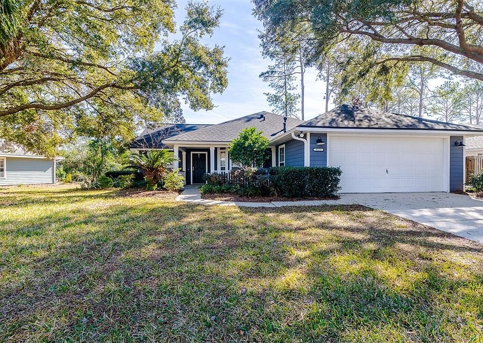 Welcome to Mentone, an extremely popular subdivision just off Archer Road and a short commute to Butler Plaza, UF Health, and numerous other amenities and services. Mentone is a well-loved neighborhood due to its convenient location, neighborhood pool, playground, trails, wide streets and sidewalks, school zones, and Clay for your electricity! This home rests on a premium lot that overlooks open fields and nearby trees, which makes you feel like you have so many acres of groomed recreational space but with only your own lot to maintain. The views from the back porch, living area, dining area, and kitchen all overlook the wide-open space. This home received a new roof in 2020 and a new AC in 2023. Upon arrival you are welcomed by the front porch and right as you enter, you will love the vaulted ceilings, and large great room opening to the bright kitchen and dining area. This home also has a generously sized formal dining room that could be used as an office area. The main bedroom overlooks the open space and has a large walk-in shower with double-shower heads, double vanities, and a large jacuzzi bathtub. On the other side of the home, there are two guest bedrooms and a full bathroom. The flooring of the living spaces is vinyl, which offers easy cleaning and wonderful durability. This is a winning combination of a beautiful home on a premiere lot in a fantastic neighborhood. Come make this home yours so you can walk to the sparkling pool, enjoy the trails, sports courts, and recreation fields!