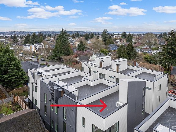 3.99% FIXED 10-YEAR FINANCING now available on the final 2 homes in this 9-home collection! Imagine waking up in a sprawling primary suite that occupies the entire upper level, with a huge walk-in closet & bathroom and plenty of natural light. This CORNER UNIT is framed by walls of windows, showcasing an open-concept kitchen and living area perfect for everyday living or entertaining. The lower-level bed/office opens to a private patio & access to your deep GARAGE with storage. Enjoy those beautiful Seattle days on the rooftop deck! Located in the lively Loyal Heights neighborhood, just a block from the Rapid Ride bus and close to shops, cafes, and everything Ballard has to offer. w/D included and No HOA or HOA dues. Welcome home!