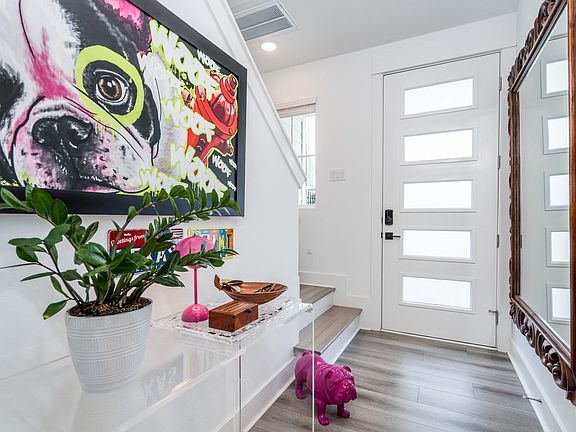 Fountain filled courtyardEntry foyerSmall yardStainless appliancesQuartz countersOversized ceiling fansSpa like loo