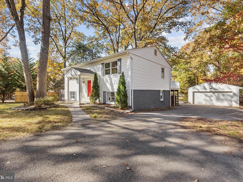 Elvaton Acres! Large 1.5ac. flat lot. Nature surrounds this charming split foyer, loaded with amenities. bright & airy open concept renovation. Complete gourmet kit with ss appliances ideal for entertaining. New flooring. Upgraded Baths, custom tile & more. Unwind on the deck at the end of a long day in your private back yard with mature trees and beautifully manicured landscaping. 2-car detached garage is a bonus. Large driveway.