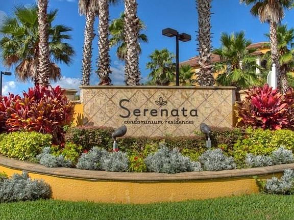 Beautiful turnkey furnished condo located in Serenata. This former model unit is located on the first floor and has three bedrooms, two bathrooms, laundry room, open floor plan and split bedrooms. The primary bedroom has a king sized bed, large walk in closet and an on suite bathroom with a tub/shower combination. The guest bedrooms each have queen sized beds and walk in closets. The guest bathroom has a tub/shower combination. The kitchen has a closet pantry, plenty of counter space for food prep and cooking and a breakfast bar. Separate living room/dining room combination. Screened in lanai looks out over a lake. Serenata has many amenities including gated security, heated community pool, tennis courts, 24 hour fitness center, clubhouse with billiard room, library and full kitchen, valet trash pickup as well as a car wash area for your convenience. No pets allowed. Will not last long.
