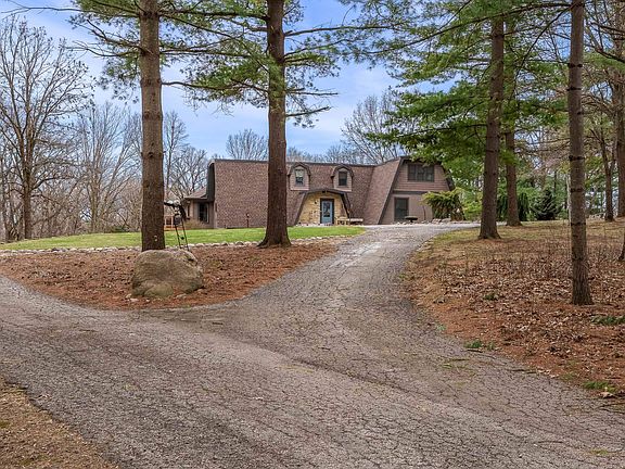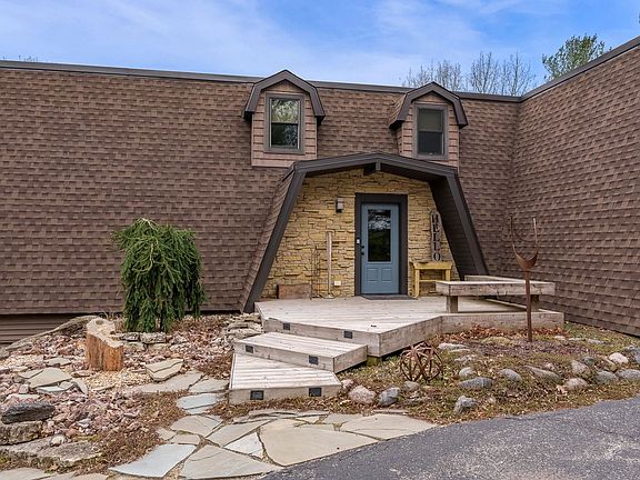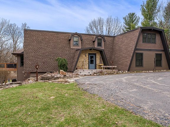 Tucked away in a private, storybook setting, this stunning almost 6,000 sq ft home offers an unforgettable blend of character, craftsmanship, and natural beauty. With 4 bedrooms, 4 full and 2 half baths, and a design that’s anything but ordinary, this interior-designer-owned gem is a rare find. From the moment you arrive via the circle blacktop driveway, you'll feel the North Woods charm, surrounded by mature trees and nature's serenity. Step inside to soaring beamed ceilings, custom cabinetry, rich hardwood and tile flooring, and two open staircases. The kitchen is a Chef's dream featuring a large island, Butler's pantry with additional oven and eat-in table space. The living room has built-in bench seating, a gas fireplace and beamed ceilings. The home features thoughtfully designed built-ins, an open yet cozy layout, and a full-exposure walkout basement—bringing in incredible light and unbeatable views. The backyard boasts a limestone wall, flowing creek, and breathtaking views year-round. The 30x40 outbuilding with a loft and spiral staircase adds a versatile touch—ideal for a studio or workshop. Enjoy the convenience of a 4-car tandem garage, and rest easy with newer roof and windows. Whether you're gathered around the fireplace or taking in the peaceful surroundings from your deck, every inch of this home invites comfort, inspiration, and uniqueness.