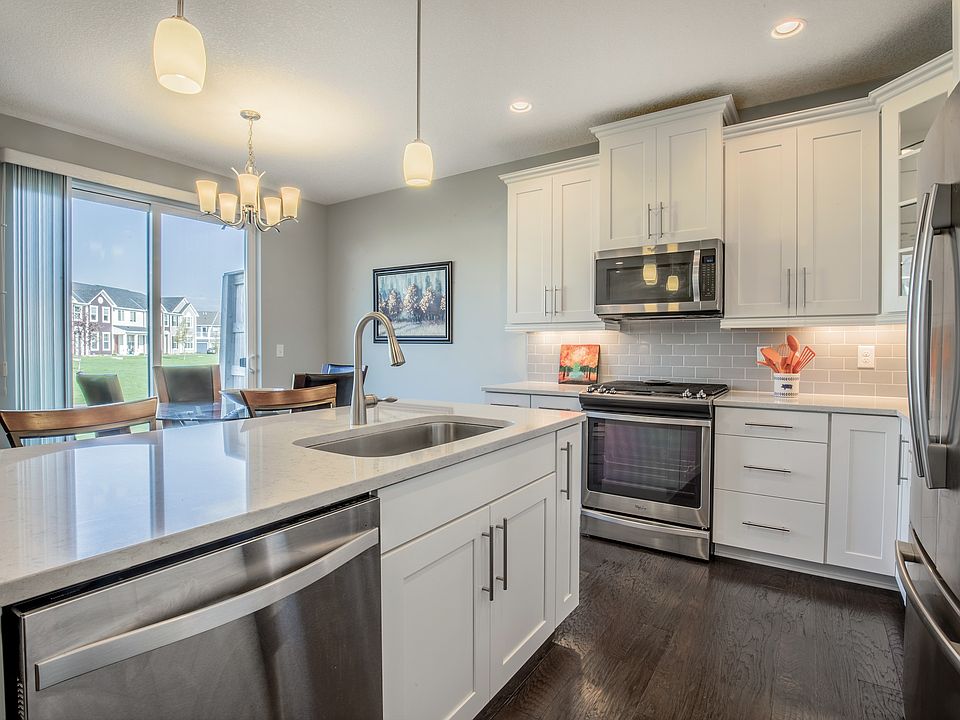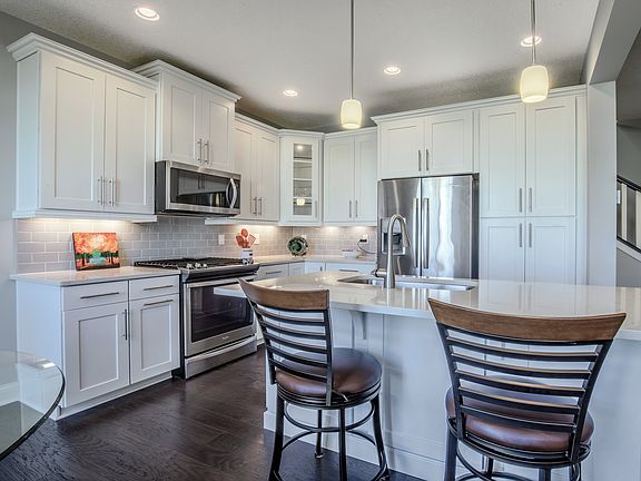 Incredible home offers a low maintenance lifestyle w/conveniences galore! Close to; scenic Central Park, Town Green, pond trails, retail, restaurants, entertainment, library, Lifetime, transit AND so much more. Architecturally designed open floor plan with modern posh finishing! Spacious bedrooms and even a loft! Finished lower level is great flex space ~ could even be 3rd bedroom ensuite with private 3/4 bath. Awesome main level patio to backyard offering attractive green space & pond view.