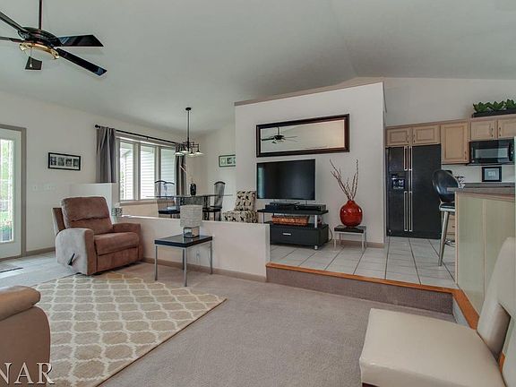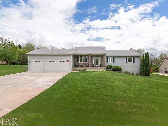 You will love this contemporary, modern, one of a kind, three bedroom, three bathroom ranch in Carlock! This home has an open and unique floor plan with tons of natural light coming in! The large kitchen has tons of cabinet space, as well as a huge island with a breakfast bar and a built in desk. The master bedroom features two closets. The master bathroom has his and her vanities, a Jacuzzi tub and a shower. Venture down to the fully open basement, with no poles to obstruct the flow. The huge wet bar is sure to be a hit! There is plenty of space to entertain or enjoy with friends and family. Walk right out onto your back patio and enjoy the great outdoors. The roof was replaced in 2010 and is a 45 year roof. The driveway and backyard patio were new in 2016. You will also love the 3 car heated garage with a drain.