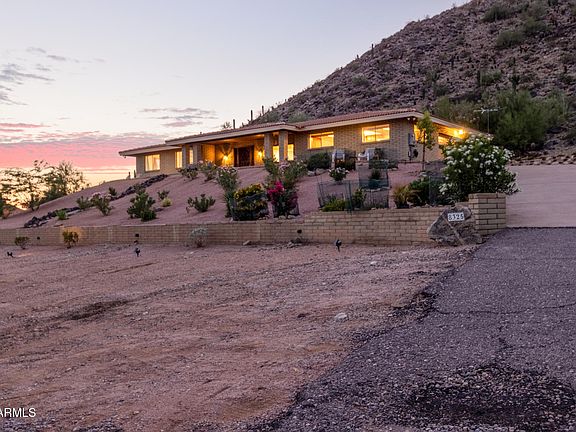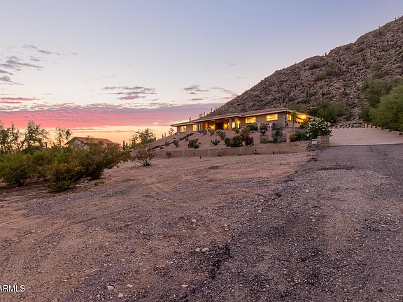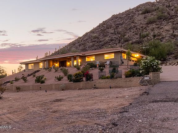 Perched on a scenic hillside of a 1.25-acre horse property, with no HOA this serene desert retreat offers breathtaking mountain views and exceptional features throughout! Enjoy low-maintenance desert landscaping in the front and a natural desert backdrop in the back, perfectly blending into the surrounding terrain. Inside, you'll find open common areas highlighted by elegant lighting, warm wood flooring, and a cozy fireplace. The chef's kitchen is equipped with a center prep island, tile counters, built-in appliances, and double Jenn-Air ovens, making it perfect for cooking and entertaining. Each bedroom offers comfort with mirrored door closets and plush carpeting, while the spacious main bedroom includes a makeup vanity and private bath for a true retreat experience. Step outside to a full-length covered back patio with paversperfect for relaxing or entertainingwhile pavers continue throughout the front and back for a polished look. The property also includes a convenient storage shed and plenty of space for your horses and outdoor lifestyle. A true hillside jewel with room to roamdon't miss this desert gem!