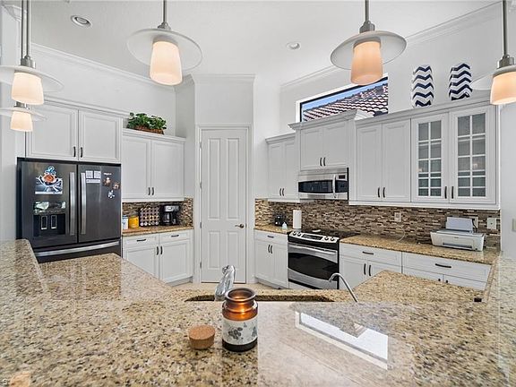MOVE IN READY + READY TO SELL!!! This beloved San Remo III POOL HOME boasts a SOUTHERN EXPOSURE & a panoramic view of Six Mile Cypress Preserve! Coming Turnkey Furnished! This home shows like a model! Beautifully upgraded kitchen with white kitchen high-level cabinetry, a breakfast bar with raised panels, bump-out cabinets & staggered cabinets above microwave & refrigerator, and glass-paned cabinets to display special items! With granite countertops, GE Profile appliances, designer stainless steel sink and under cabinet lighting, this kitchen is stunning! Among the features of the kitchen are reverse osmosis water filtration at the sink, as well as at the lines for the refrigerator's ice and water dispensers! Water softeners are even installed throughout the house! This home features diagonally laid tiled floor throughout the main areas, wider-plank wood flooring in the third bedroom/den, and PLANTATION SHUTTERS AND CROWN MOLDING throughout! Additional upgrades include new pool heater (app driven), ring security system, and partially newly screened lanai! This is the BEST SINGLE-FAMILY VALUE IN ESPERANZA!! Enjoy everything Paseo has to offer, Tiki Bar, movie theater, Gym, resort style pool and more!