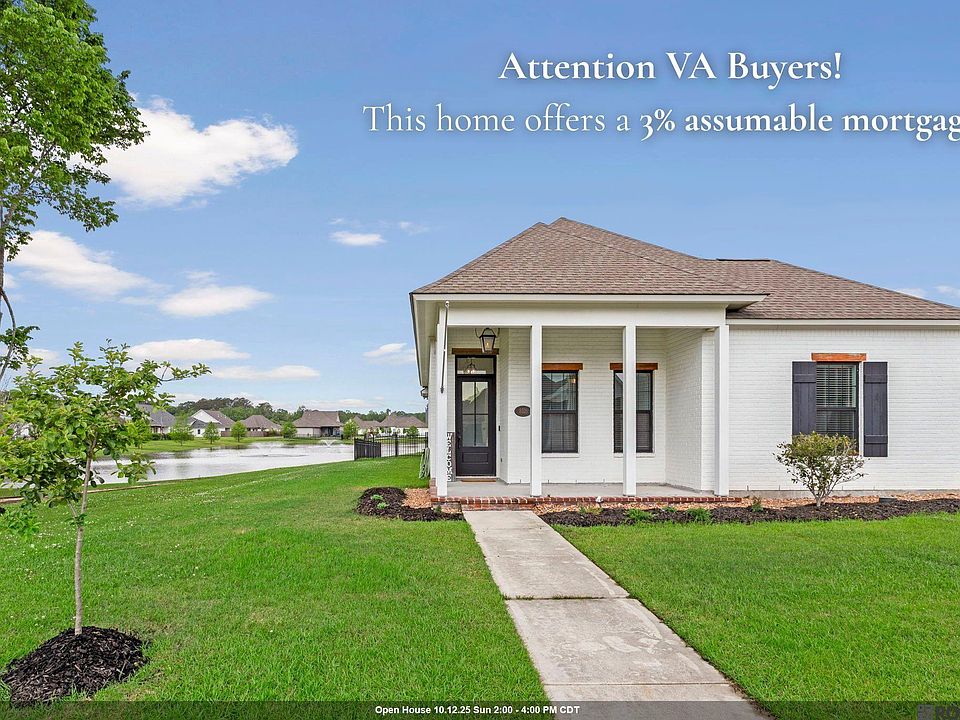 OPEN HOUSE SUNDAY OCT 12Th 2-4 PM. 3% ASSUMABLE MORTGAGE FOR V A BUYERS! Fall love with this stunning 3-bedroom, 2.5-bath home, perfectly located next to the neighborhood park and scenic lake. Full of character and thoughtful upgrades, this home features beautiful cypress accents both inside and out, giving it a warm and inviting feel. Custom Plantation shutters offer privacy in the living room. Enjoy wood floors throughout the main living areas, BRAND NEW Carpet in the bedrooms, a spacious 2-car garage, and a fully fenced backyard that has incredible views of the water— perfect for relaxing evenings or weekend gatherings. The open floor plan features a chef's dream with granite countertops in the kitchen, island, pantry, gas cooktop and refrigerator. The primary suite is a luxurious retreat, offering a large oversized shower, a soaking tub, and a huge walk-in closet. Elegant design touches are found throughout, along with smart home capabilities including an integrated security system, outdoor camera system, automated door locks, and a smart garage door. Located in the heart of Central, this home combines modern conveniences with classic charm, and is convenient to shopping and area restaurants. Outdoor grill and television over the fireplace will remain.