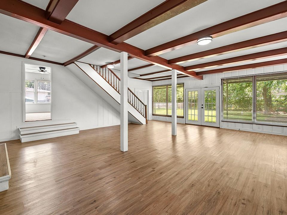 STUNNING, UNIQUE HOME! Spacious & highly desired layout will WOW you. This 1950's dream home has a modern flair & 5 BEDROOMS! Nestled in the heart of Houston, this established community is highly desired. HUGE living room boasts beautiful, ceiling woodwork, rich beams & unique detail. Space GALORE! With a large, PLUSH lot and a landscaped front yard, it is a true gem. The practical floor plan is perfect for entertaining. The cozy back porch overlooks a serene yard. The remodeled, modern primary bathroom/shower adds a touch of luxury, while the bedrooms on the 1st floor offer convenience, with an EXTRA bedroom/flex room upstairs for added versatility. Don't miss out on the opportunity to own this amazing, unique home! --------*Roof is approx 4yrs old.* LOW 2.01% TAX RATE TOO! NO HOA. *Video tour available, text agent!*