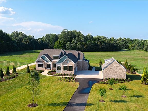 Situated on over 11 acres in The Reserve at Campbell Creek, this Heatherworth floor plan blends thoughtful design with stunning surroundings. Step inside to find dual first-floor primary suites positioned on opposite sides of the home for enhanced privacy. A formal dining room and a dedicated office greet you upon entry, setting the tone for this exceptional layout. At the heart of the home is a family room with a striking red oak coffered ceiling and accordion doors, offering sweeping views of the expansive property. Adjacent is a sunroom, perfect for soaking in natural light, and an open-concept kitchen featuring a spacious pantry, granite countertops, and premium JennAir appliances. The second floor provides two additional bedrooms, a loft, and a game room, creating a versatile space for any need. For vehicle enthusiasts or extra storage, enjoy an attached 3-car garage along with a detached 2-car garage.