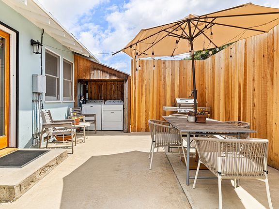 - Patio: Patio umbrella, table and chairs for eating, washer and dryer, washing machine and dryer set, gas grill.