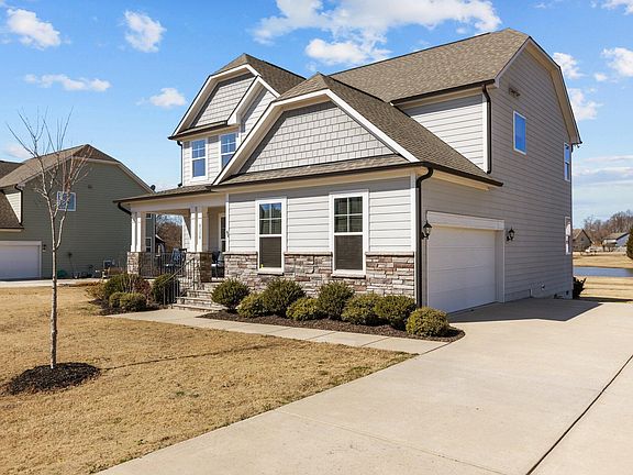 Nestled on a rare .51-acre lot with stunning views of a larger stocked pond, this exquisite 4-bedroom, 3-bathroom home in Honeycutt Landing combines modern luxury with serene natural beauty. Spanning 2,495 sq. ft., it features an open-concept design, including a cozy family room with a gas fireplace and a chef's kitchen with granite countertops, island seating, and stainless steel appliances. The main floor also offers a guest bedroom and full bath, perfect for visitors or multigenerational living, alongside a formal dining room and a freshly stained rear deck that overlooks the peaceful pond framed by graceful weeping willows—ideal for evening relaxation or roasting s'mores by the firepit. The expansive outdoor space includes a patio and lush, flat lawn, perfect for entertaining or enjoying scenic views. Upstairs, you'll find three spacious bedrooms, a versatile loft, and a two-car garage with plenty of parking and storage. The home is located within the highly desirable Wake County Schools district, ensuring an excellent education. Honeycutt Landing offers a vibrant lifestyle with multiple stocked ponds, a sparkling community pool, picnic areas, and scenic spots for outdoor activities. What truly sets this home apart is its proximity to the new 540 Expressway, which just opened, getting you everywhere in the Triangle in half the time! With easy access to Downtown Raleigh, Cary, Apex, Fuquay-Varina, and beyond, this home perfectly balances peaceful retreat and ultimate convenience. Don't miss out on this exceptional opportunity!