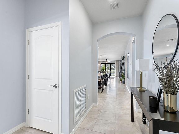 Discover the pinnacle of contemporary living in this impeccable single-family residence, where style, space, and a tranquil waterfront location combine to create a truly irresistible opportunity. This highly sought-after layout features 3 bedrooms, 2 bathrooms, + DEN. Offering everything the modern, discerning homeowner desires. Beyond the living room's sliding glass doors lies your private outdoor oasis: a spacious, screened-in patio paved with brick pavers. It is the perfect spot to simply watching the sunset over the water.