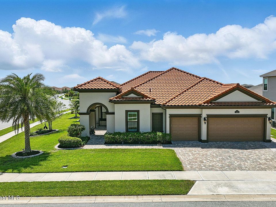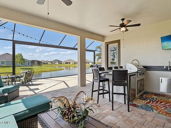 This stunning 4-bedroom plus an office, 3.5-bath home offers over 3,000 sq. ft. of living space on a corner lot in a gated community. The chef's kitchen features a gas stove, quartz countertops, built-in microwave and oven, a kitchen island, breakfast nook space with gorgeous lake views from the kitchen and living area. A dedicated office offers the perfect space for work or study. The luxurious primary suite includes a walk-in closet and a spa-like bathroom. Step outside to the panoramic screened-in backyard with a stand-alone hot tub and an outdoor kitchen with a bar top, perfect for entertaining and enjoying the serene lake view. Inside, the family room boasts a built-in TV display with stone finishes, an electric fireplace, and elegant crown molding, creating a cozy and sophisticated ambiance. The 3-car garage offers ample storage, and the community amenities include a pool, playground, and tennis court. This home offers everything you need for comfort and an active lifestyle.
