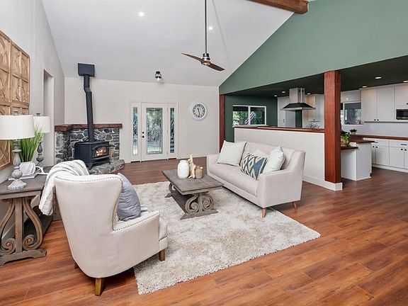 This country home has been lovingly updated & is in turnkey condition! Spacious open floor plan with wrap around covered deck that expands on the space to enjoy your local views of nearly one acre property & trees beyond. Just steps away from Western States Trail, set in a small community of Gold Country History. Home offers spacious chefs kitchen, dining, living, Master bedroom/bath & 2 other bedrooms & 1 bath on main level, Additional family room, 3 bedrooms & another bath are downstairs. Wood stove on both levels are in addition to central heat & air. Large detached garage & level front yard with plenty of additional space for parking. Neighboring property has horses, buyer to verify if farm animals are allowed & how many you can have...
