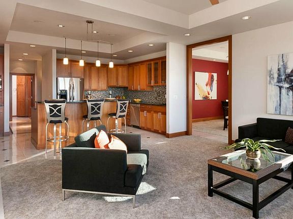 Architectural Masterpiece! Panoramic lake/mountain views. Sophisticated details and high-end finishes throughout. Step into the dramatic two story entry. Dine with top of the world views. You'll love the chef's kitchen; slab granite, cherry cabinets, stainless appls, walk-in pantry and island. Master oasis with spa bath, heated floor, private deck and enormous walk-in-closet. Sunlit basement with views, game room and in home theater. Main level den with fireplace, hot tub, and A/C. You can have it ALL!