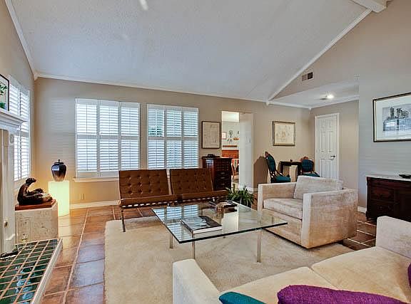 AMAZING AMENITIES INSIDE AND OUT! PRIVATE LANDSCAPED COURTYARD PLUS 32 X 25 DECK OVERLOOKING TREE-LINED CREEK ON GREENBELT! THIS TOWNHOME IS ON ONE LEVEL AND NOT ATTACHED ON ONE SIDE PROVIDING PRIVACY,LIGHT, OPEN SIDE YARD. THE 18 INCH TILE FLOORING, 6-PANEL DOORS-FRENCH DOORS,PLANTATION SHUTTERS,RECENT PAINT,GRANITE COUNTERS, UPDATED BATHS ARE JUST A FEW INTERIOR AMENITIES.OVERSIZE 2 CAR GARAGEW OPENER.CATHEDRAL CEILING,LITE,BRITE LIVING WITH FP