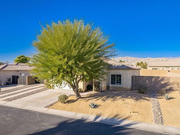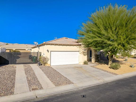 Welcome to the well-maintained, gated community of Shadow Hills! This wonderful home has 3 bedrooms with the master bedroom glass sliding doors providing access to the backyard. With fresh new paint, this home has an open floor plan with large ceilings and a bar height island. Perfect for a new or growing family or as an income property. Side of the property includes more than sufficient space for RV parking, boats, jet skis or your sand rail!! Community is a quiet friendly HOA with hiking trails nearby, dog park, and a playground for the kids. Backing up to the foothills, you have terrific views of the San Jacinto mountains range all around you. Low HOAs and near the freeway, shopping centers, restaurants, casino, golfing, and schools, there is no place like Shadow Hills. - photos virtually staged.
