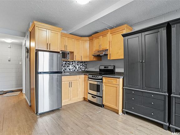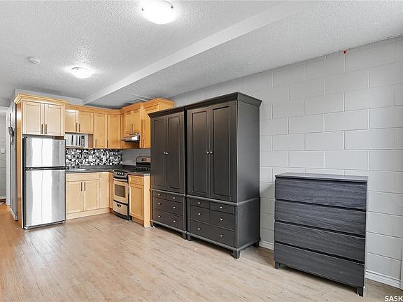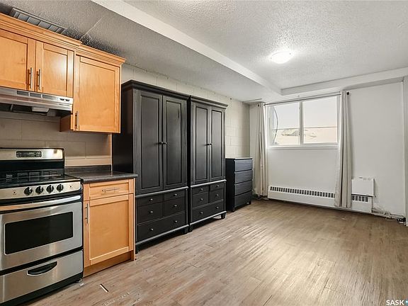 First time buyer or savvy investor - this bachelor suite condo is a rare opportunity with condo fees at $137/mo and yearly taxes at just $313! This main floor unit keeps cool in the summer and cozy in the winter; the block construction is excellent for a quiet space. Updates have included flooring throughout, modern paint and a kitchen with maple cabinetry and newer appliances. There is a storage nook at the front door and there is shared laundry access right across the hall! Located on a quiet street in Caswell Hill - this is a spot to view in person where you are a short walk to Ashworth Holmes park, walking distance to Sask Polytechnic, downtown, or shopping on 33rd street. You will notice from the start that this building is well cared for with a manicured exterior and maintenance throughout; fresh paint, flooring, updated lighting, security doors, cameras, and even a newer boiler unit! Additionally there is an electrified parking stall and storage area for bikes. Don’t hesitate to book a showing on this condo. Call today!