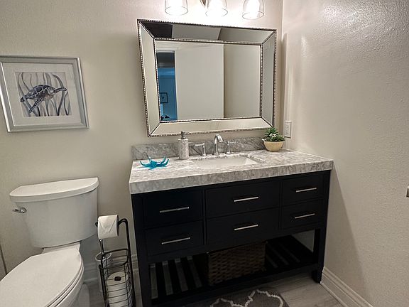 Take in the ocean breeze while relaxing on a super comfy couch or swivel recliner in front of the fire place. You will find everything you need to relax and enjoy. Fully stocked kitchen with Quartz counters and stainless steal appliances. Includes Microwave, toaster, oven, Keurig, blender, spices, oils, and tea.