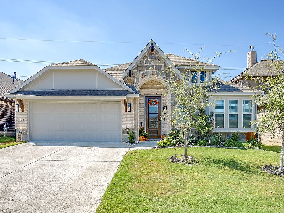 Welcome to 833 Godley Ranch—a beautifully designed 4-bedroom, 3-bath home in the highly sought-after Godley Ranch Classic community. Built in 2024, this 2,459 square ft home combines modern upgrades, open-concept living. Step through the striking 8-foot front door into a bright, open layout featuring laminate wood flooring, tall ceilings, and thoughtfully designed living areas. The heart of the home is the open kitchen and living room, where you’ll find quartz countertops, stainless steel appliances, and a stone-to-ceiling fireplace that anchors the space with warmth and style. Enjoy outdoor living on the covered patio overlooking a fenced backyard with full sod and sprinkler system. The 2-car garage, tankless water heater and energy-efficient systems add everyday comfort and peace of mind. Located on an interior lot with curb appeal and privacy.