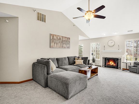 Rare on the market this townhome with fantastic Lake Zurich Schools is a great place to call home! A perfect 3 bedroom, 2 bath model features a welcoming 2 story foyer and spacious living room with a vaulted ceiling and gas fireplace. Trendy white kitchen is outfitted with granite counters, classy under cabinet lighting and stone backsplash. Stainless appliance that includes 5 burner cooktops, dishwashers & a French door refrigerator. Bright and light eating area with a great view of the outside through its patio doors that lead out onto the deck.  Large primary suite with walk-in-closet along with double sinks vanity and luxurious separate shower and bath gives you a relaxing vibe.The other 2 bedrooms down the hallway have good closet space and plenty of natural light. Very convenient  2nd floor laundry room with front load washer and dryer! All of this is complimented with a brand new carpeting.  To add to your excitement, HVAC is only 3 years old with Honeywell WIFI enabled thermostat, new light fixtures through-out, sprinkler system and hard-wired smoke alarms. Low HOA fee!! All it`s waiting for is YOU!