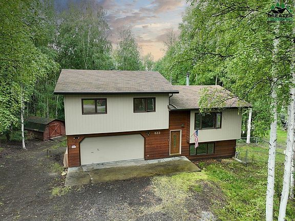 Set in the hills of the very desired Lakloey Subdivision, this 3 bedroom, 2 1/2 bath home has so much to offer. Step inside the front door and be greeted by an open kitchen and living room with a master bedroom and suite as well as two additional bedrooms. Off this same floor is a large deck for entertaining, barbecuing, or observing the auroras. Attached is a two car heated garage. A bonus room along with the laundry room and a half bath are on the lower level along with another even larger deck. Current owners have done a ton of upgrades including new kitchen cabinets, Pergo flooring, kitchen appliances, paint, ceilings, LED lighting, and an upgraded laundry room. Outside is a fenced in yard with tons of privacy and 2 sheds for extra storage. Ideally positioned in close proximity to both Ft. Wainwright and Eielson Air Force Base and within minutes of North Pole, 833 Ridge Loop Road is a perfect abode waiting for it's new family - turnkey and ready to go! Check out this video: https://iframe.videodelivery.net/fbc30b11bfacb2075efa8966d8a730f1