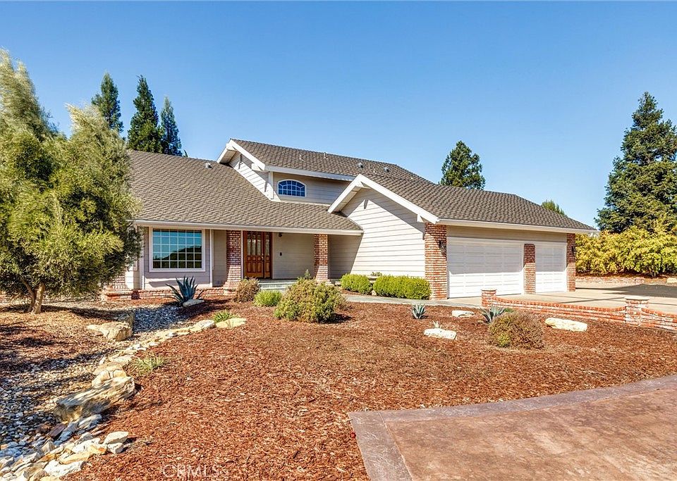 Stunning Custom Home on 1 Acre Near Downtown Paso Robles. Discover this exceptional 4-bedroom, 3-bathroom custom home, perfectly situated on a sprawling one-acre lot just minutes from the vibrant heart of downtown Paso Robles. This one-of-a-kind property combines modern luxury with serene outdoor living, making it an entertainer's dream. The spacious living areas feature red oak hardwood flooring and plush carpeting throughout, providing a warm and inviting atmosphere. The living room showcases a unique, high-end ammonite fossilized fireplace, adding a rare and stunning focal point to the space. The expansive kitchen boasts stainless steel appliances, along with a cozy breakfast area and a large pantry for all your culinary needs. The versatile layout includes a bedroom or office on the main level, ideal for guests or work-from-home arrangements. Retreat to the luxurious primary suite, which features a generous ensuite bathroom complete with a bonus room and private balcony, perfect for enjoying morning coffee or sunset views. The property is adorned with mature trees and lush landscaping, offering plenty of space to entertain family and friends in a picturesque setting. With beautiful views and ample space, this home provides the perfect blend of tranquility and convenience, just minutes away from the best that downtown Paso Robles has to offer. Don’t miss your chance to own this exceptional property!