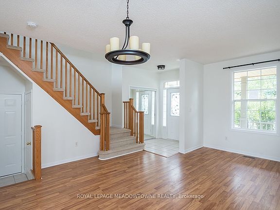 Nestled on a serene, tree-lined street in Miltons beloved Beaty neighbourhood, this spacious Mattamy-built Powell model radiates warmth and possibility. With over 1,896 square feet of comfortable living space above ground, this 3-bedroom, 3-bathroom home blends family-friendly design with peaceful surroundings and endless potential.Step into the bright, open-concept main floor where oversized windows flood the space with natural light and invite a refreshing cross breeze. The inviting family room, anchored by a cozy gas fireplace, is the perfect gathering spotwhile the formal living and dining area offers a welcoming space for entertaining. The cheerful eat-in kitchen features warm-toned cabinetry, ample storage, and direct access to a fully fenced backyard that backs onto greenspace with no direct rear neighbours. Its the ideal setting for relaxing evenings or weekend BBQs. Upstairs, find generously sized bedrooms, a handy office nook, upper-level laundry, and a spacious primary suite complete with a walk-in closet and an ensuite that includes a soaker tub and separate showerready to be your personal retreat. With no sidewalk out front and parking for three, plus a charming front porch perfect for morning coffee, this home checks all the boxes. The unfinished basement offers exciting potential to create the space of your dreams.Surrounded by mature trees and fantastic schools, Watson Terrace is just steps from tranquil trails and parks. And for commuters? Youll love the unbeatable access to highways 401 and 407making your morning drive a breeze.Whether you're a growing family or looking to plant roots in a highly sought-after community, this home is brimming with opportunity. Move in and make it yours!