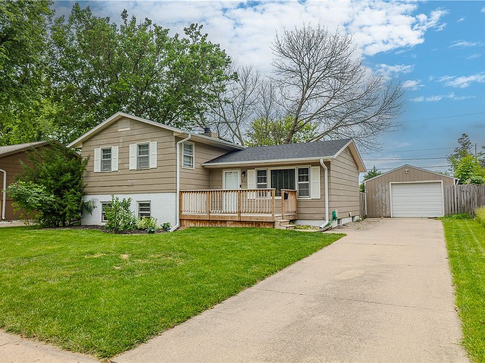 Beautiful split-level home featuring 3 bedrooms and 2 bathrooms, with over 1900 square feet of living space and plenty of storage. Inside, you'll find modern interior touches including updated kitchen countertops, cabinets, and flooring throughout. Enjoy the peace of mind with a brand new roof and gutters (Replaced May 2024) and a newer furnace (Replaced February 2023). The home features double living spaces and a modern laundry/mud room with access to a large deck and fenced in private backyard. Upstairs, the ample-sized bedrooms include a primary bedroom with a private, modern bath. Downstairs, there's a cozy wood-burning fireplace room that can serve as a study or bonus space. The large basement features built-in shelving for organized storage. Conveniently located just minutes from Iowa State's Central Campus. Make this your future home sweet home!
