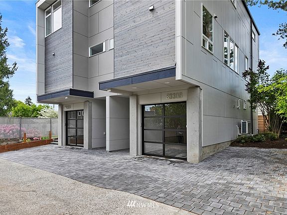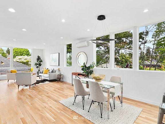 Located mere steps from the vibrant Greenwood Neighborhood, this 3 bedroom 3.25 bath new Modern is far above the norm. With over 1,800 sq ft, this fine home "lives large" & features an amazing display of designer accents coupled with high quality finishes along with outstanding views of the Cascade Mtns & Mt Rainier. Entertain in style on the main level with its beautiful white oak hardwood floors & spacious kitchen with custom cabinets, stainless appliances and breakfast bar. Split duct air conditioning will provide added comfort as well. The tranquil Master Suite offers a spa like bath with heated floors that carry into the Rain Shower. You will find the yard space attractive & each of the two homes have a private garage. One of a kind!