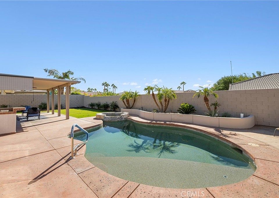 Welcome to this beautiful home in a gated community of Shadow Hills! 4bed and 3 bath, plus a gorgeous den/office..has been upgrades since it was purchased. As you enter the door to an open concept of the living room and kitchen which include granite counter tops, stainless steel appliances, walk-in pantry, and dining area. A cozy fireplace awaits you in the lovely living room, with a view of the gorgeous back yard. It includes an in-ground pool, spa, built in BBQ, as well as an outdoor living space for those nights of entertainment with family and friends. Master bedroom has new flooring, as well as remodeled master bathroom, with walk in closet, as well as dual sinks. Over 3,000 sq ft home also has a two car garage with RV parking, laundry room, and terrific mountain views. More than $67K done in upgrades since purchased!