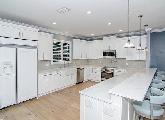 Need room to breathe? Everything you're looking for is wrapped up in this recently remodeled home large enough for your family to spread out! Don't settle for the ordinary finishes of new construction! This kitchen recently received a $75,000 CUSTOM remodel which boasts HIGH END appliances, expansive QUARTZ counter tops, farmhouse sink, wine cooler, pot filler over the cooktop, and more! All the main living areas feature stunning smoked driftwood French oak floors! No need to worry about window treatments - this home already has wooden plantation shutters throughout the house. With a guest bedroom downstairs, and the master, 4 additional bedrooms, and a large bonus room/den upstairs, there is plenty of room for everyone to have their own space. The serenity extends outdoors as you cool off in the pool while enjoying beautiful sunsets over a long lake view. All this with LOW HOA dues, PLUS a convenient North Naples location in a friendly community with dining, shopping, and "A" rated schools nearby! Come see for yourself all the goodness this home has to offer!