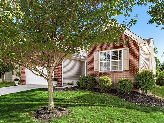 Beautifully kept one level home with spacious open floor plan. Gorgeous hardwood flooring. Bay window overlooks huge new Trex deck. Enjoy the natural scenery as the backyard slopes to a view of tall trees and greenspace. Inviting fireplace is a focal point of the great room. Large dining area, breakfast bar, and casual eating area are all open to the great room, providing a fantastic situation for gatherings. New lighting fixtures. Enjoy updated quartz countertops and newer appliances in the large kitchen with pantry. Huge kitchen sink, new faucet and disposal. Built in kitchen desk. Owner suite is separate from the two additional bedrooms and has double sinks, a private water closet, and huge soaking tub with separate shower. Main floor laundry with sunny window. Huge unfinished basement with poured walls and radon system has space for workouts, storage, hobbies, or future finishing. Garage floor has epoxy coating. Concrete driveway.
