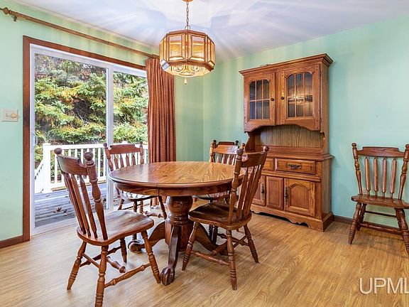 Welcome to this very well-maintained 2-bedroom, 1-bath ranch in the peaceful community of Rapid River, offering 1,196 sq ft of comfortable main-floor living with bedrooms, full bath, and laundry all on one level. The cozy and efficient kitchen connects to a dedicated dining room that features a patio door leading to a deck and adjoining concrete patio with a fire pit. Perfect for grilling and enjoying evenings outdoors. An attached two-car garage and paved driveway provide convenient parking and storage, while the full basement offers excellent flexibility with room for storage now and the potential to finish for additional bedrooms, a family room, or a home gym in the future. The property includes a nice front and backyard with trees that add a secluded, country feel while still being close to neighbors for comfort and community. All appliances are included, making this move-in ready home a fantastic option for first-time buyers, downsizers, or anyone seeking easy and practical living with room to grow.