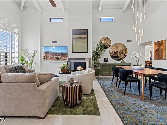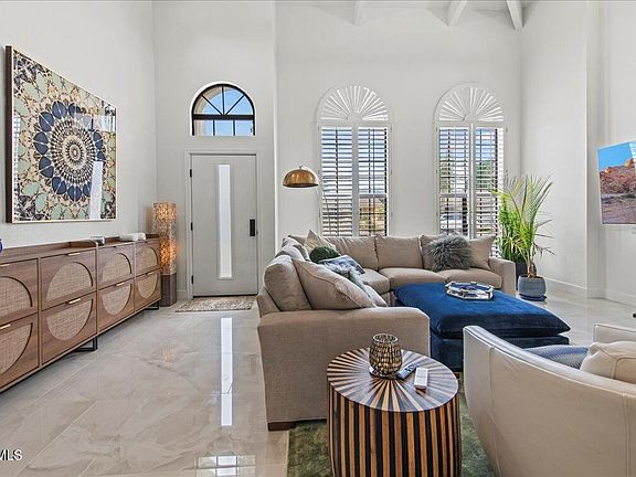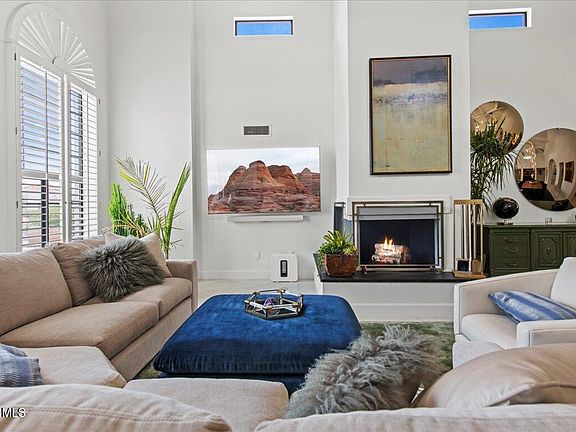 This ultra chic residence beautifully combines soft contemporary elements with exceptional comfort. Loaded with unique custom finishes, each room has its own special characteristics. The open floor plan flows seamlessly, and the soaring ceiling height creates a grand feel. The living room/dining room combination features a beautiful wet bar that serves as an excellent backdrop to the space that also includes a great looking fireplace. The kitchen has an oversized quartz covered island, artistic tile accents and sleek custom cabinetry, the sun-soaked home office is stunning, and the primary suite features a spa-inspired bathroom with a free standing tub, seamless glass shower, floating dual-sinks, quartz countertops, and stylish custom cabinets. The resort-style backyard is very special with a newly refinished pool, cascading waterfall, LED multicolor lighting system, limestone deck, an outdoor screened shower, a built-in kitchen complete with barbecue, beverage fridge and storage, and multiple gathering spaces that make outdoor entertaining a breeze. The location is stellar sitting in the heart of McCormick Ranch that has lush greenbelts, walking and biking paths, great schools, parks, boutique shopping, and exceptional restaurants. This fantastic home is the epitome of modern luxury accentuated by fresh finishes in a perfect setting!