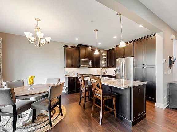 Stunning Townhome centrally located in the heart of Maple Grove. The open-concept layout seamlessly connects the living room, dining area and kitchen creating a great space for entertainment. The gourmet kitchen is a chef's dream, it boasts of granite countertops, stainless appliances, upgraded cabinets + eat-in center island. The white enamel baseboard + trim highlights the beautiful hardwood floors + 9-foot ceilings + gas fireplace. The spacious master suite is an oasis of relaxation, complete with multiple closets + spa-like ensuite bathroom. The bathroom boasts a soaking tub, + separate shower providing a luxurious experience. The additional upstairs bedroom is generously sized and offers lots of closet space. The upper level also includes a versatile bonus loft area which can be used as a home office/family room. The basement has a full bath and large room which can be used as a bedroom or flex room. The location is unbeatable, easy access to shopping dining + entertainment.