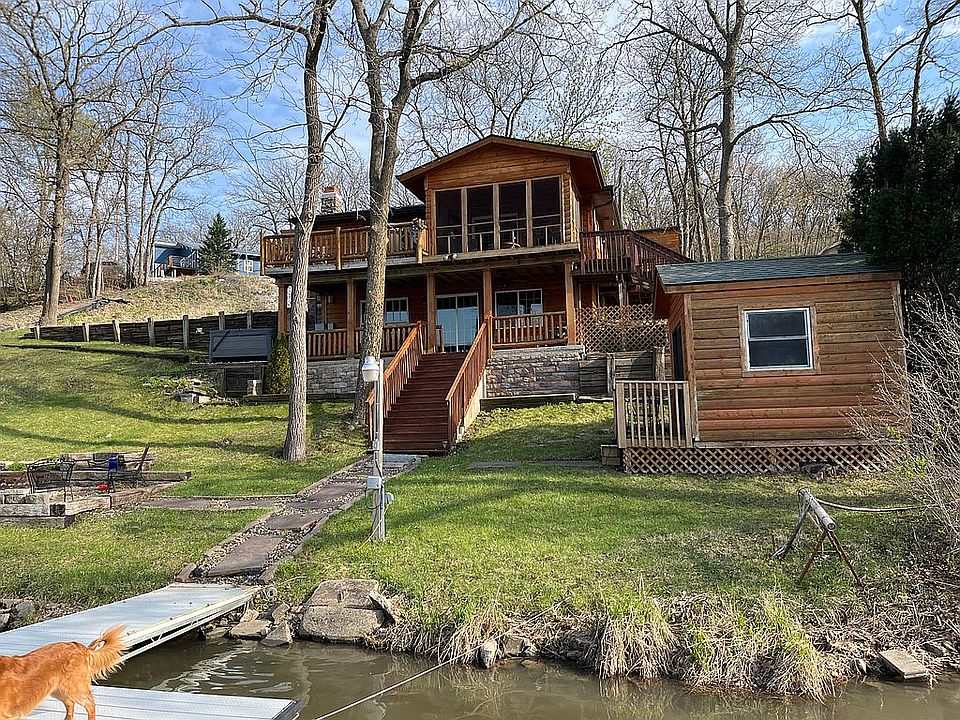 ***zillow map location incorrect*** THIS IS ON DIAMONDHEAD LAKE. Waterfront walkout on deep water cove less than 30 minutes from Des Moines metro on private Diamondhead lake. This log sided ranch has 3 living areas, 3 bedrooms and two full baths and a detached 2 car extended garage and is fully conducive to lake living. It is full of natural light and great views of the cove and main lake. The top floor hosts two bedrooms, bathroom, kitchen with granite countertops and island, living room, an outdoor living screened-in porch and deck overlooking the cove. The walkout level has another bedroom, living area with wet bar and fireplace, an additional bathroom and laundry/storage room. The walkout has a large porch that spans the entire length of the house. Steps down from the house lead you to a boat house, firepit area and the waterfront. The oversized two car garage also houses storage underneath. The private lake association offers recreation through ATV trails, multiple fishing ponds, dog park, disc golf course, and bow hunting area. Buildable waterfront lot next door also available for sale.
