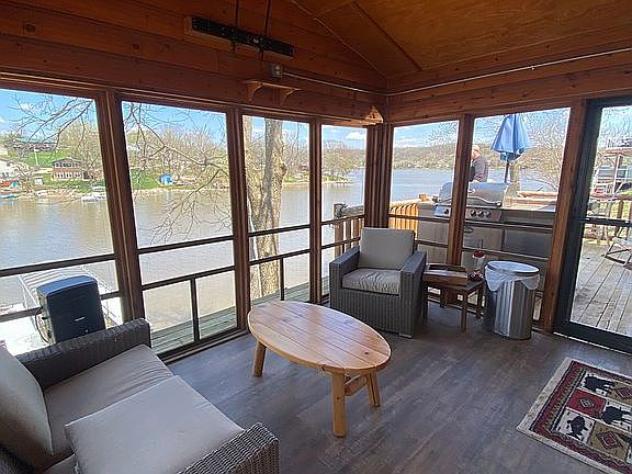 Waterfront walkout on deep water cove less than 30 minutes from Des Moines metro on private Diamondhead lake. This log sided ranch has 3 living areas, 3 bedrooms and two full baths and a detached 2 car garage and is fully conducive to lake living. It is full of natural light and great views of the cove and main lake. The top floor hosts two bedrooms, bathroom, kitchen with granite countertops and island, living room, an outdoor living screened-in porch and deck overlooking the cove. The walkout level has another bedroom, living area with wet bar and fireplace, an additional bathroom and laundry/storage room. The walkout has a large porch that spans the entire length of the house. Steps down from the house lead you to a boat house, firepit area and the waterfront. The oversized two car garage also houses storage underneath. The private lake association offers recreation through ATV trails, multiple fishing ponds, dog park, disc golf course, and bow hunting area. Buildable waterfront lot next door also available for sale.
