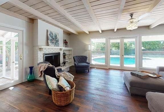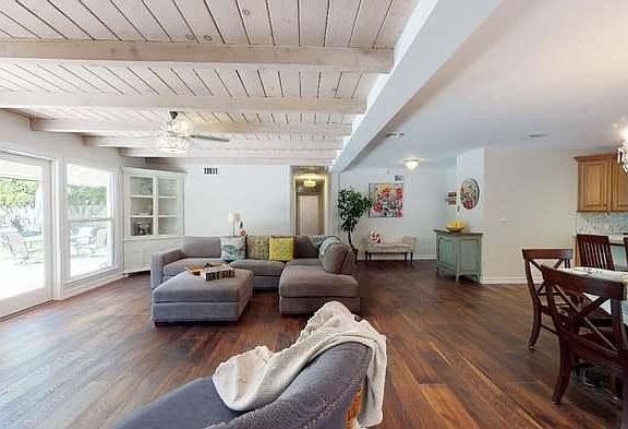 Home is located at the end of a Cul-de-sac in very desirable neighborhood adjacent to Sherwood Forest. This beautifully updated home is 3 bedrooms, 3 bathrooms & has a bonus room that could be used as 4th bedroom. Kitchen is updated with stainless steel appliances. Energy efficient windows, whole house fan, solar and drip irrigation to keep utilities bills low! Separate laundry room off of kitchen and plenty of storage throughout. Remote controlled gates & circular driveway with plenty of parking, plus garage with EV charging outlet. Large open floorplan living area w/ wide plank wood floors, French doors access to the backyard in nearly every room. Classic cozy wood burning fireplace & built-in bookcases. Main bedroom suite with the bathroom you have been dreaming of: large shower, free standing tub, double vanity, French doors to your own deck w/ outdoor shower. Private "Staycation" backyard w/ salt water pool, remote controlled retractable awning w/ Led lights, huge jetted spa and adjustable shade umbrella, gas fire pit, shade & fruit trees. No smoking allowed. Owner pays for gardener and pool maintenance. Security deposit required for pets.