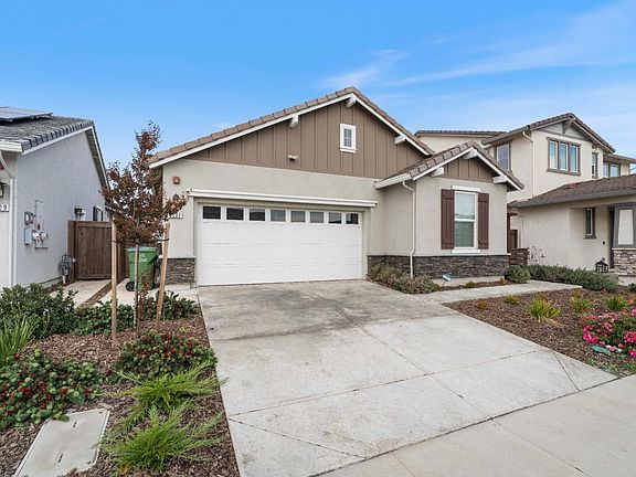 Beautiful 2024-built single-story home in a desirable new community in Elk Grove, offering 1,678 sq ft with 3 bedrooms and 2 baths. This modern residence features upgraded cabinets, window blinds, and an open-concept layout that fills the home with natural light. Energy-efficient upgrades include owned solar, a whole house fan, and a Tesla wall charger, providing both comfort and savings. The kitchen comes fully equipped with all appliances, and the home is truly move-in ready with a fully landscaped backyard perfect for outdoor gatherings. Located near new parks, top-rated schools, and convenient shopping, this property offers a wonderful blend of style, efficiency, and prime Elk Grove living.