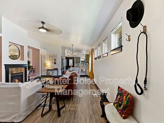 Tucked into Boise's Matlock Place community, this 3-bedroom, 2-bath home offers a seamless blend of style and comfort in a highly convenient location. With vaulted ceilings, a gas fireplace, and an open-concept layout, the living space feels both expansive and cozy. Luxury vinyl plank flooring, fresh paint throughout, and high-end finishesincluding remote-controlled ceiling fansbring a polished, modern touch. Central heat and A/C ensure year-round comfort.