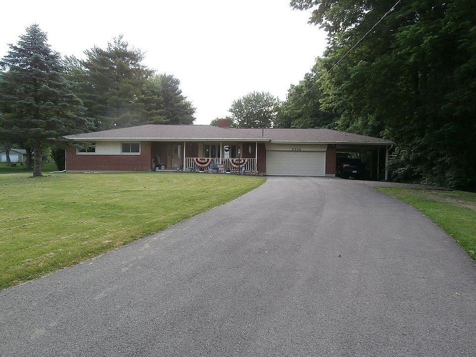 Wow! Country property on 1.03 acre in Clearcreek Twsp, Springboro. Brick ranch with full Bsmt. 3 Bdrms, 2 baths, finished basement, 2 car attached garage plus a 1 attached car port. There is also extra parking for a boat, RV, camper, or trailer. Beautiful Pool, hot tub, large fenced in 40 x 42 deck around the pool, Fire pit area, BBQ entertaining space, and a handy shed. The house sits across the street from an 82-acre plus farm with cattle. Charming front porch is perfect for enjoying the views and the sunsets. Very spacious entry opens to the formal living rm w/WBFP with insert and dining room. The eat-in country-style, well-equipped kitchen includes an abundance of cabinets and a pantry. Huge 33 x 16 family room with windows on the back of the house remodeled. The finished Lower-level rec room with Wood burning fireplace also has a 11X16 extra room that would be a great office/hobby-craft room. Nice unfinished storage area with sump pump. City Water, Septic. Electric heat. So many updates! All the major items are newer. Furnace and Air HVAC new (2021) New Roof (2018), Gutters/ Downspouts and gutter screens (2018), 18 x 32 above ground Watson Pool (2012), 40 x 42 Deck around pool and pool fence (2013), Automatic pool cleaner robot (2022), Current pool pump working fine, but have new back up motor for pool pump just in case, not installed, and will leave for buyer (2020) Deck Stained (2019), Large Bullfrog Hot tub (2016), new vinyl privacy fence around hot tub (2016), New vinyl windows (2010), Remodeled back Fm Room with added insulation and pine paneling (2010), Driveway all new blacktop (2020), Septic risers installed (2019). Water softener is an older unit, not warranted. There is an old well and cistern that has not been used for many years, not warranted. 2 Wood burning fireplaces have not been used. Fireplaces and chimney are not warranted. Excellent location, close to Austin Landing and DLM. Award winning school district. Immediate occupancy.