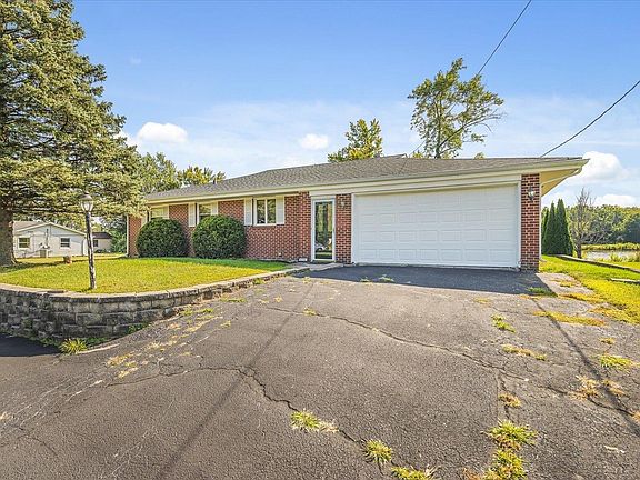 Beautiful brick ranch offers 2 bedrooms, 2 bathrooms, and a 2.5-car garage, set on a scenic stretch of the Rock River with 70 feet of sandy beach frontage and a newer retaining wall. The spacious open kitchen and dining area feature a large island with seating and maple cabinetry, ideal for gatherings and entertainment. The living room includes a cozy gas fireplace and large picture windows to take in the water views and sunsets. Primary Bedroom overlooks river and both bedrooms offer oversized walk-in closets. A first-floor laundry and covered patio add comfort and convenience. Recent updates include a brand-new roof in 2024 and a new well pump. Most furniture will remain, making this a move-in ready home or an excellent option for a vacation rental. Perched high on the property, it provides wonderful views and a peaceful riverfront setting.