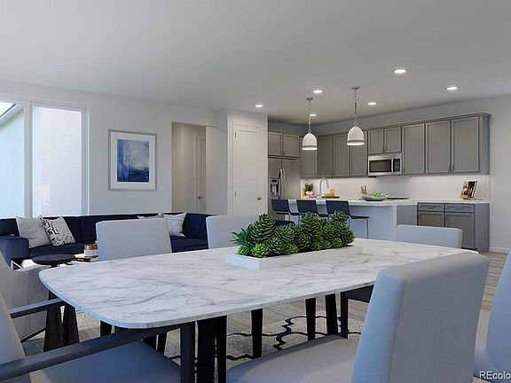 Under construction and ready for a Nov/Dec move-in! Modern farmhouse exterior style architecture and located on a desirable homesite, fronting to a small greenbelt and south facing. The kitchen features stainless Whirlpool appliances, gas range, contemporary white cabinets, quartz countertops and a farmhouse style sink. Enjoy the convenience of a main level study, plus an open great room with siding glass doors that lead to the covered patio. Natural wood-look laminate plank flooring throughout most of the main level. Spacious primary bedroom suite with large shower and walk-in closet. Located in the amenity rich community of Sterling Ranch! Sterling Ranch boasts 30 miles of trails, prolific open space, educational gardens, town center, civic center, recreation center with pool, clubhouse and fitness center, plus so much more! Instead of a traditional HOA, Sterling Ranch has a Community Authority Board (CAB) that operates like an HOA. The majority of the community costs are paid through property taxes, however, please visit the Sterling Ranch CAB website for retailed information on the additional quarterly and monthly fees (https://sterlingranchcab.com/). Taxes are TBD and have not been assessed yet for this home. Est. annual taxes are shown at approx. 1.22% of the purchase price.