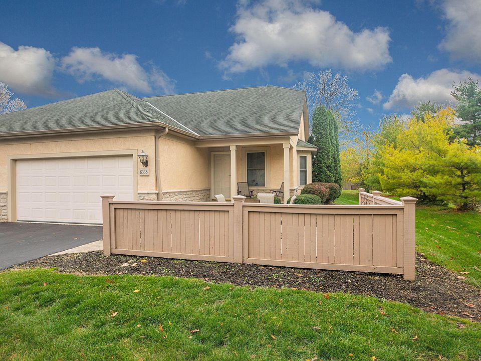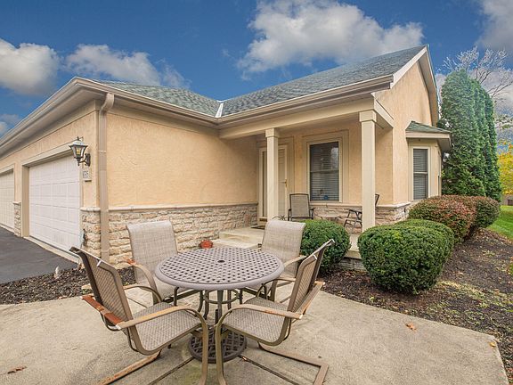 Rare ranch condo with large open floorplan & a full finished lower level! Living room has hardwood flooring, fresh paint, vaulted ceiling & bay window. The kitchen boasts recessed lighting, 42'' cabinets, granite counters, wood floors, breakfast bar, dining area, SS appliances & plant ledge. Spacious owner suite w/plant ledge, walk in closet, full bath(ceramic floor & tub) PLUS patio doors leading to the deck. Another bedroom, full bath and laundry room complete the first floor. More additional living space in the professionally finished lower level w/two egressed windows, half bath, gas fireplace and large storage area. Enjoy the outside from your concrete front porch and the wood deck in the back. Exterior painted 2018, interior painted 2020. Convenient location!